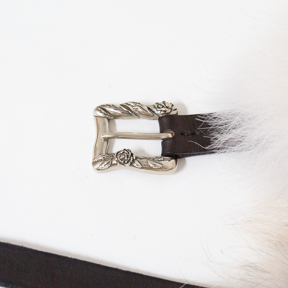Leather straps with silver filigree buckles