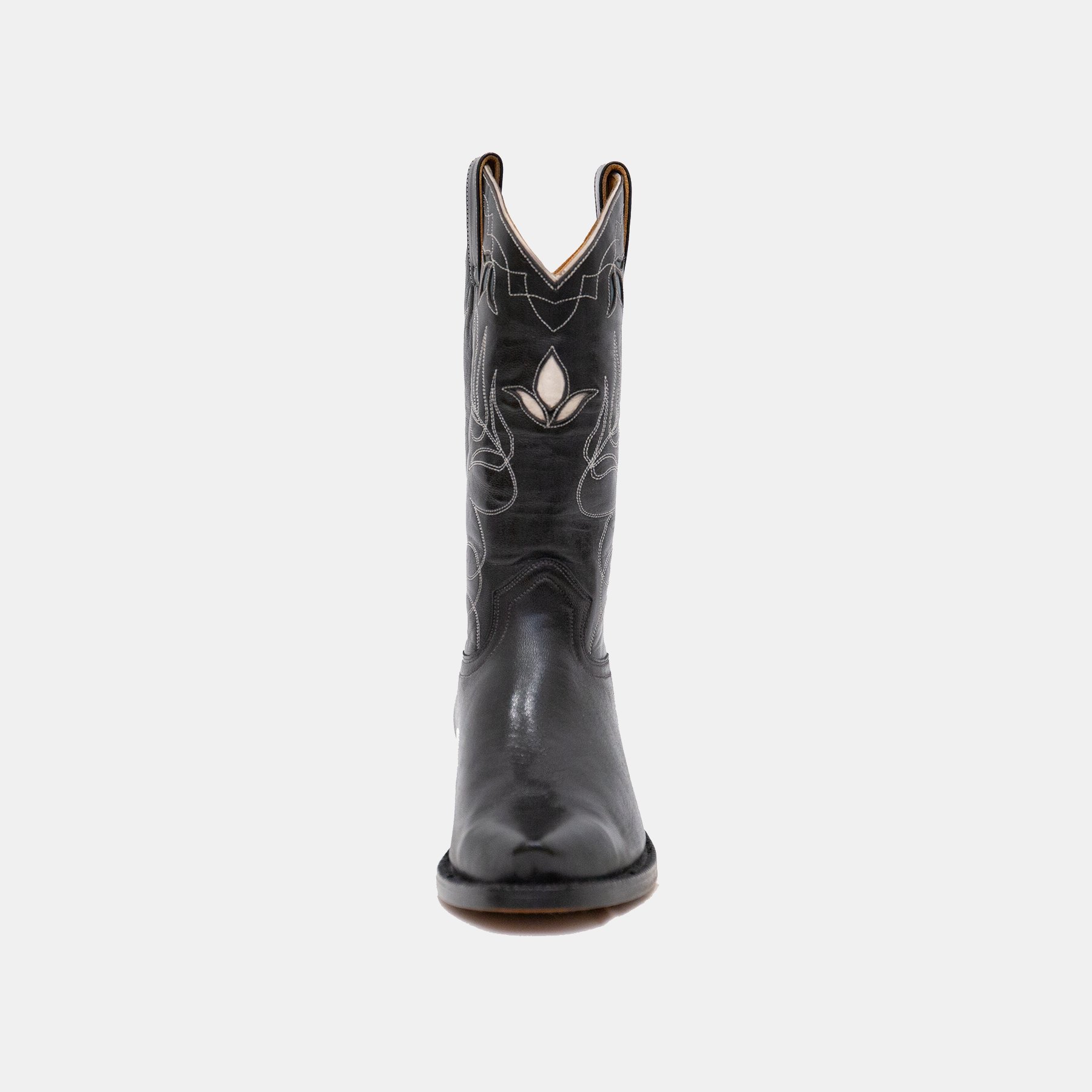 Black calfskin cowboy boots